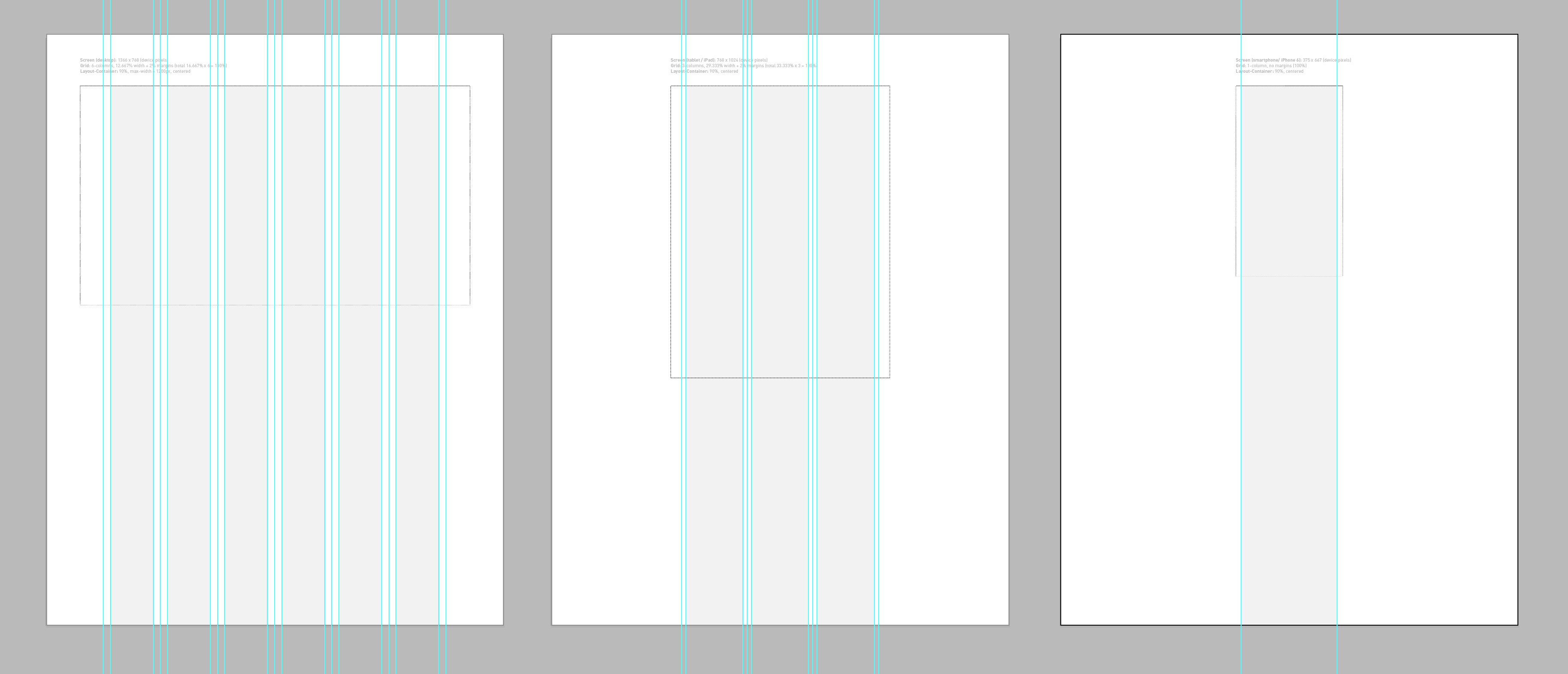 Wireframe grid handouts. Sketch sheets for desktop, tablet and mobile sizes.