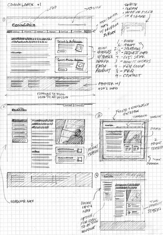 Examples of wirefame sketches