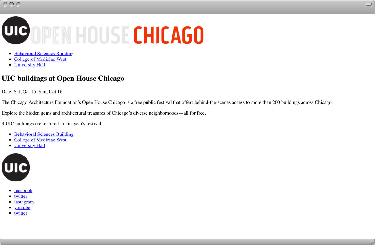 <h1>UIC buildings<br> at Open House Chicago </h1><br />
