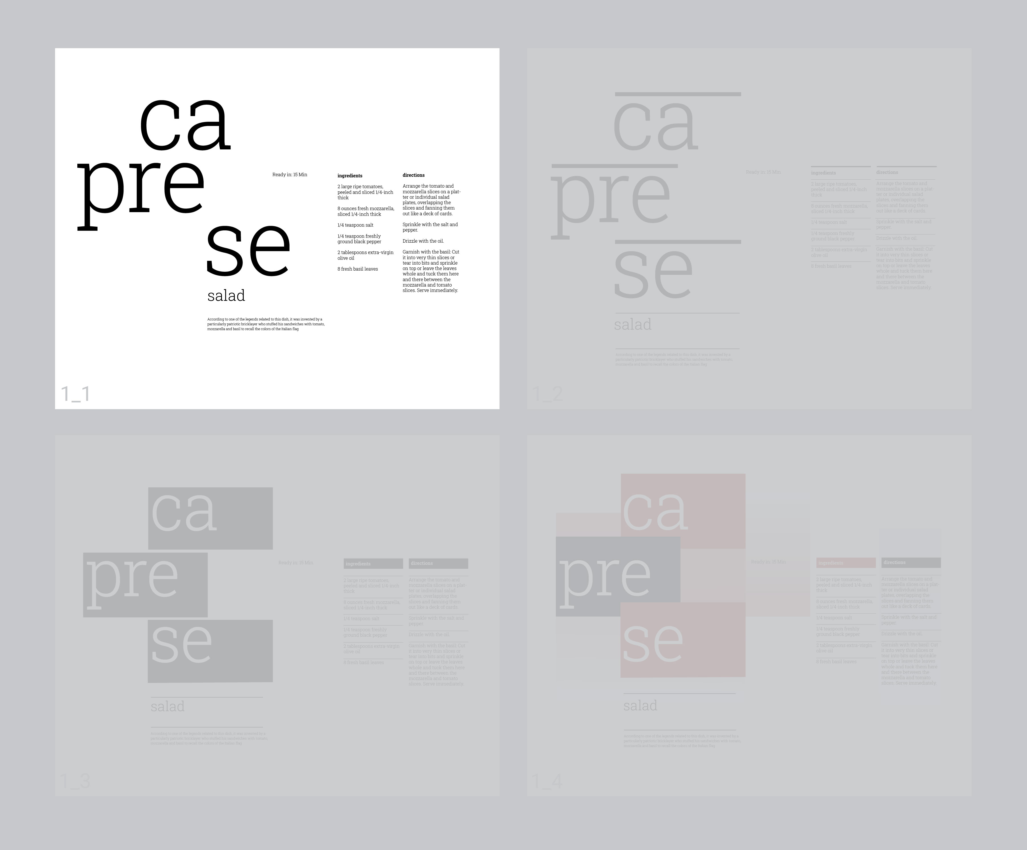 In this assignment you'll create six typographic, responsive grid layouts using the recipe text. The first step is to create responsive designs in Illustrator. One of the six designs will be coded later on.