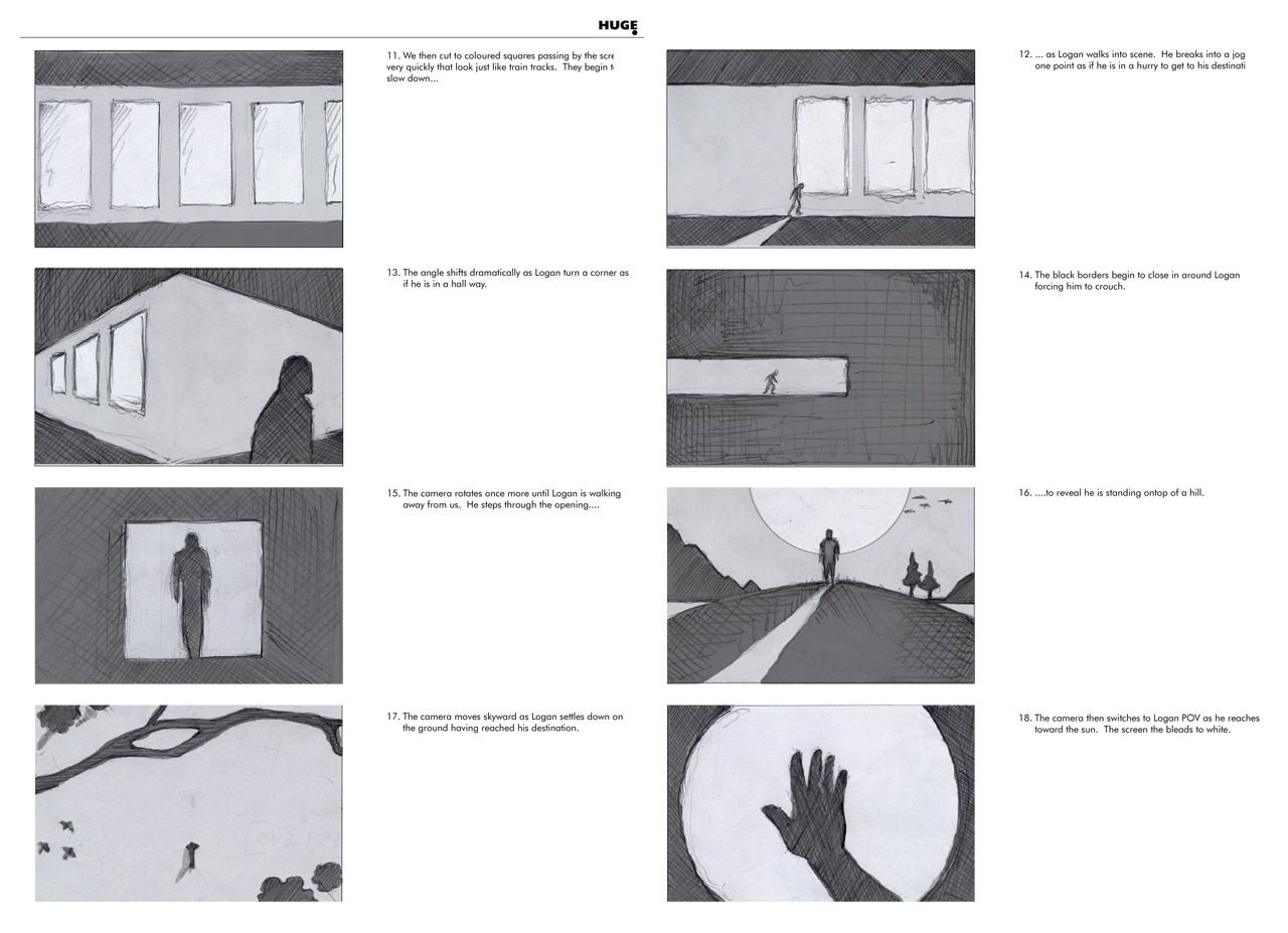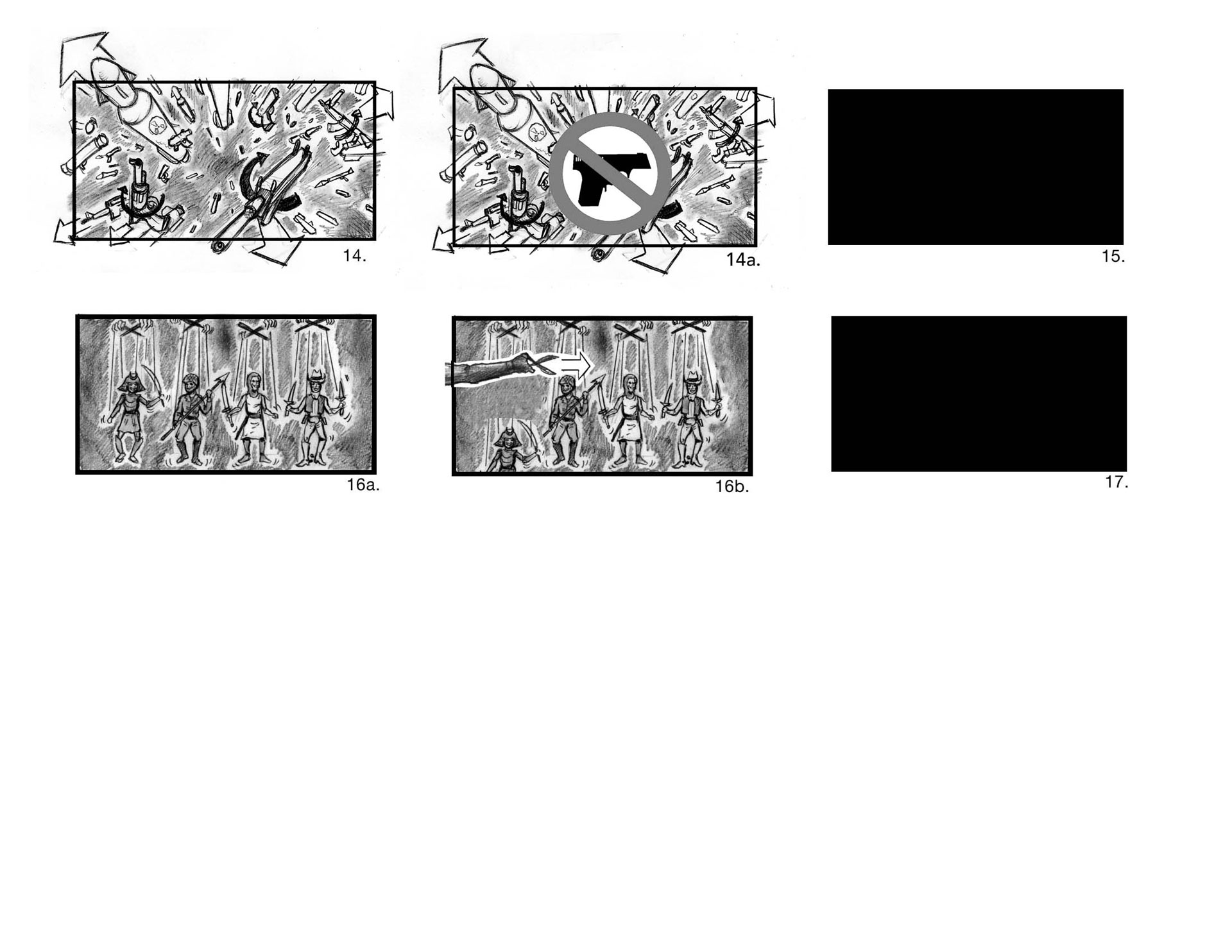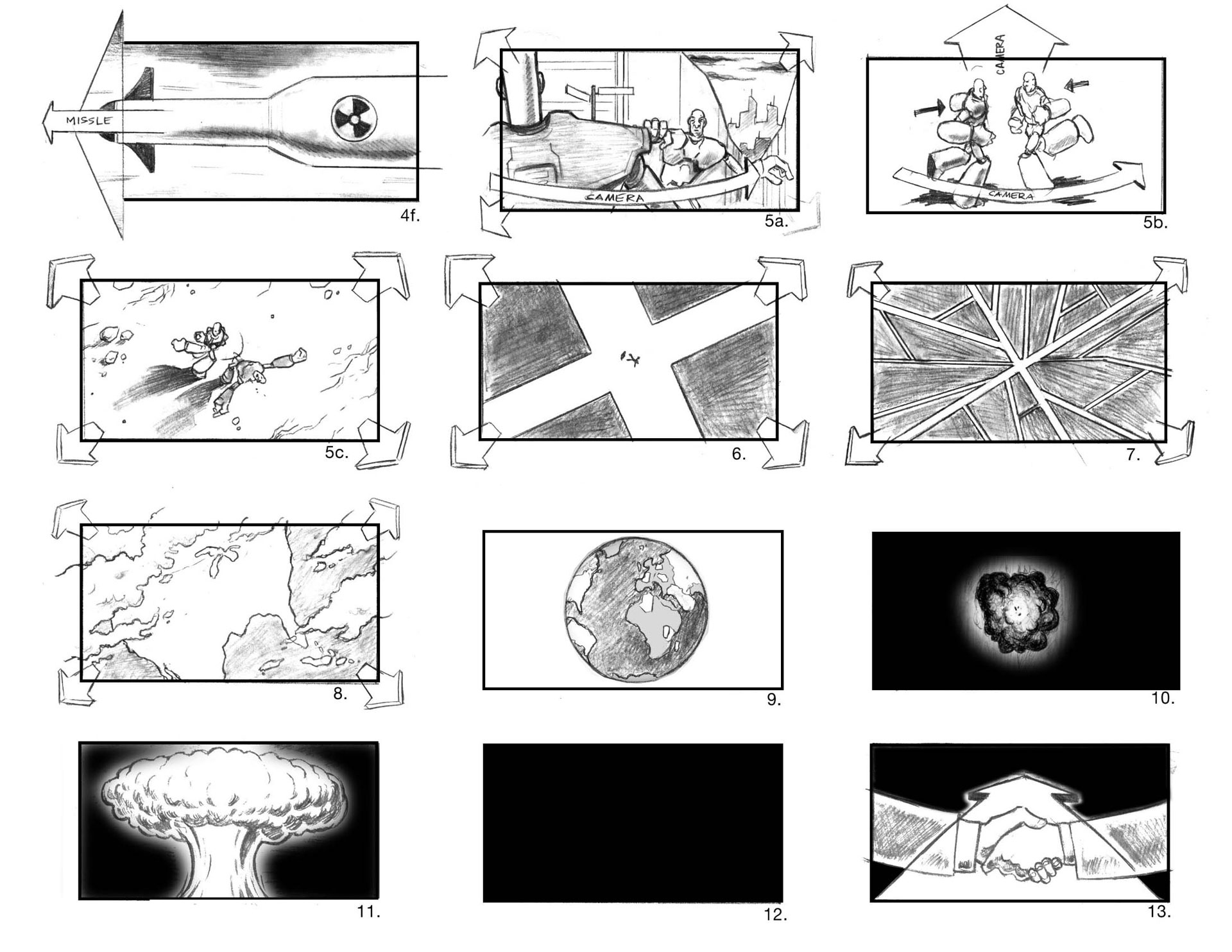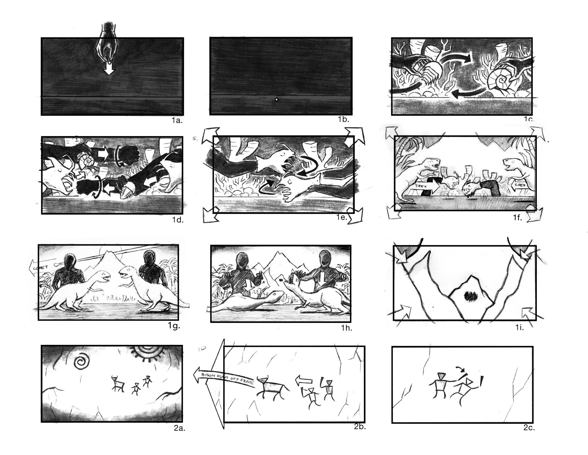 "a rough, pictorial outline of the different scenes, camera angles, or perspectives in a movie or interactive sequence, such as a video game."