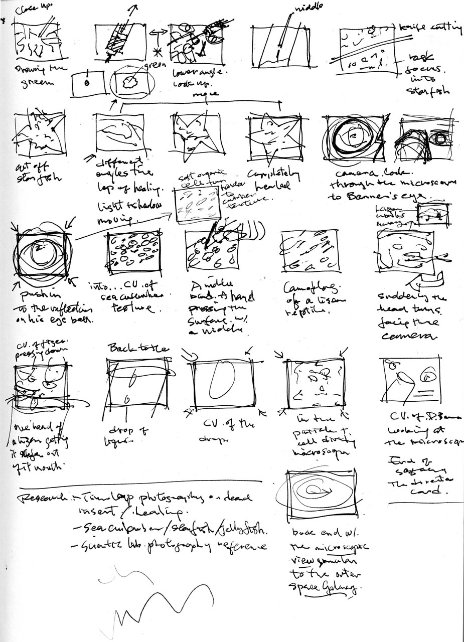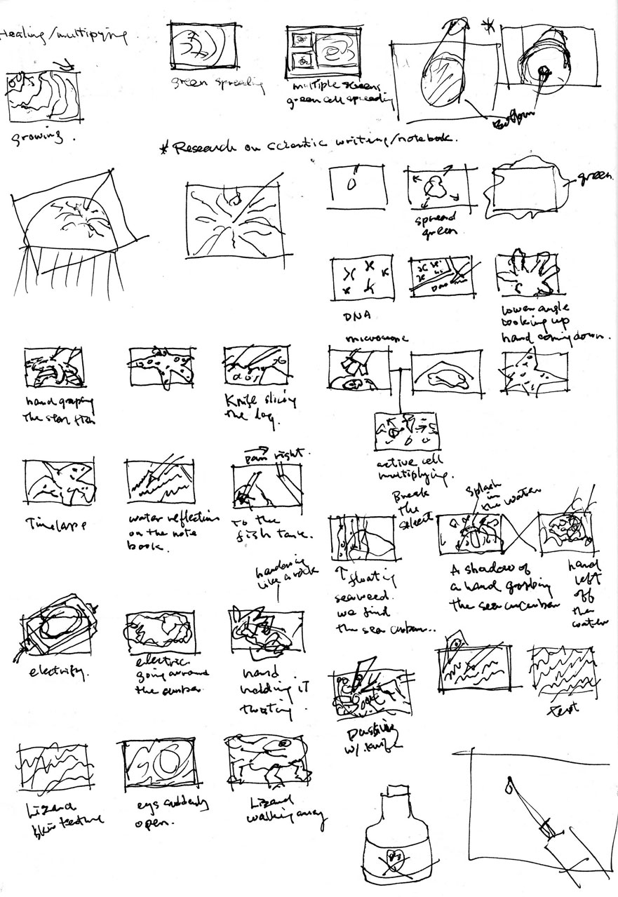 "a series of sketches or photographs showing the sequence of shots or images planned for a film."