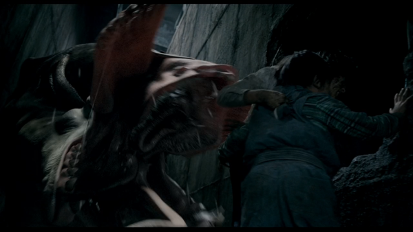 This scene shows the mutated monster terrorizing the people at the Han River and about to kidnap Hyun-Seo which then the monster takes her into the water and never to be seen again. This scene is seen more suspenseful as this is all happening in broad day light compared to the dark scenery in the previous scenes.