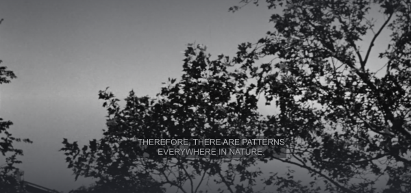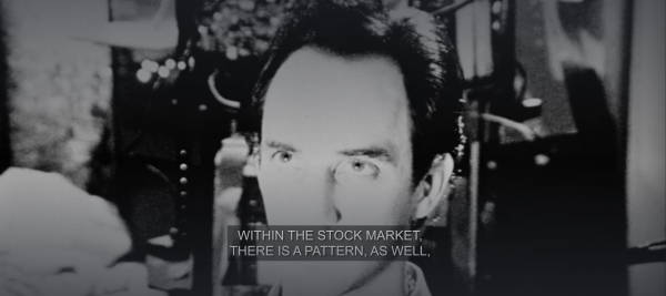 The film introduces the main protagonist, Maximilian Cohen, who is seen waking up in front of his computer screen with a nosebleed. A knock on his door alerts him of someone on the other side of the entrance, although before he opens it, he has to unlock four locks emphasizing that he appreciates privacy, but he’s also paranoid. He begins narrating his profession (math theorist) and his three rules of life: 1.) mathematics is the language of nature 2.) everything around us can be represented and understood as through numbers 3.) if you graph numbers of any systems, patterns emerge. Therefore, there are patterns everywhere in nature. Clearly, Max is infatuated with the theory that patterns can be found everywhere, which brings him to his hypothesis: if the stock market is coordinated by living organisms (human beings), then the stock market is a living organism, therefore there should be a pattern found within the stock market.